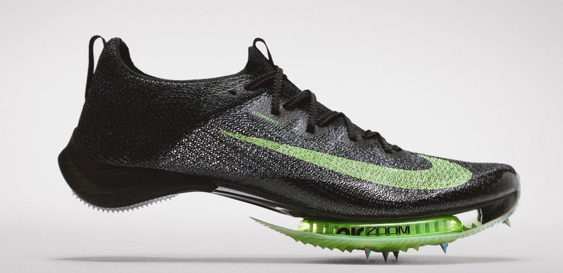 As noted in “Last Lap,” Nike has at least temporarily set aside its spiked hyper-shoe, the Viperfly (see photo: if that doesn’t look like alien technology I don’t know what does), but surely won’t lose a march to its rivals.