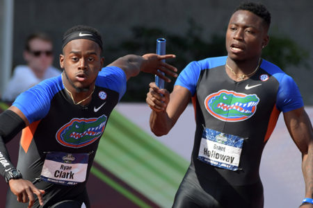 I blame pro ball teams, who started this “third jersey” silliness so they could market even more stuff to their fans. Or simply decided that black made them look “tougher.” Well excuse me, but when I go to a meet I expect to see Florida easily identifiable as the guys in some combination of orange & blue, their official colors.