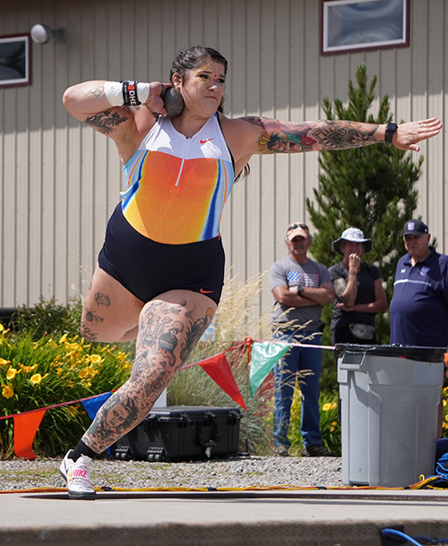 RATHDRUM, IDAHO, June 26 & 28 — Taking a big jump up at the Iron Wood Throws Classic in what has already been an outstanding season for her, putter Chase Jackson stepped into the ring and launched the longest throw the world had seen since 2013.