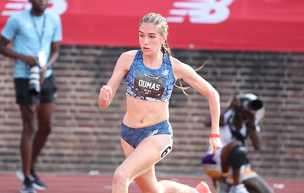 Natalie Dumas is still reeling from all the attention her New Balance triple has brought her: “It’s been a lot.” And as mind-blowing as her performances were — 55.99 in the 400H, 51.14 in the 400, 2:00.11 in the 800 — she admits that she’s just as shocked as anyone.