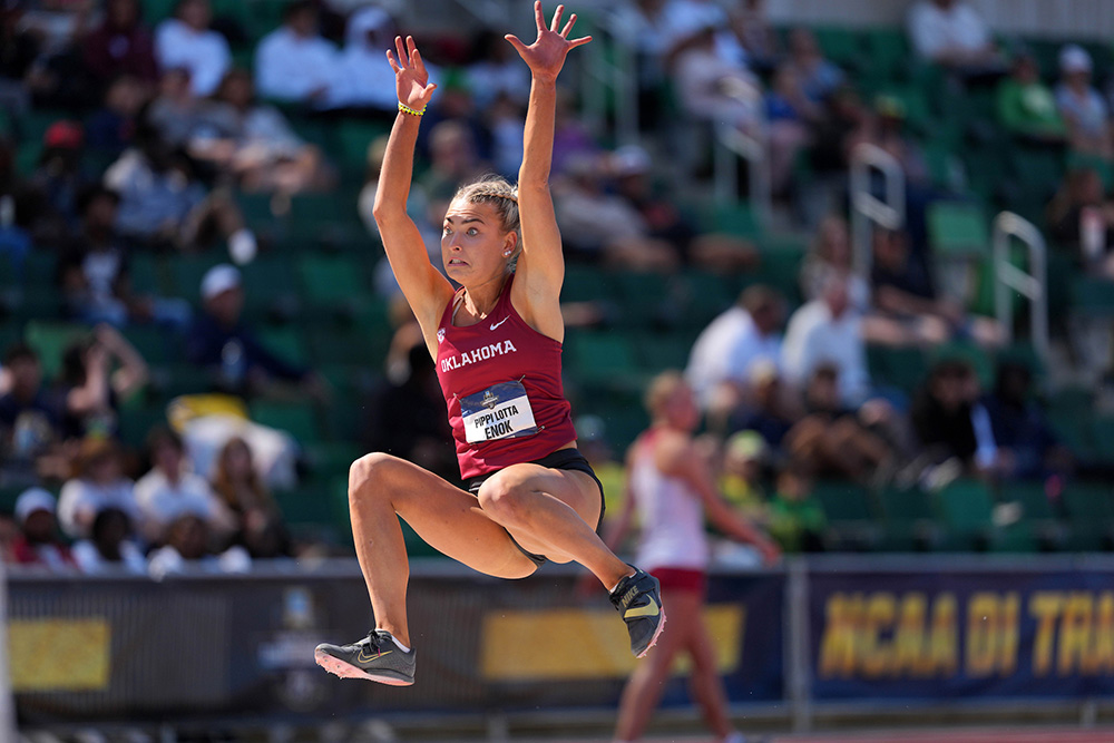 High Jump: Enok went into the overall lead with her 5-11¼ (1.81) tying an absolute PR as her projection zoomed up to 6358. O’Brien was 102 points behind yet still on PR-score pace after a 5-6½ (1.69). Meanwhile, Yakushina, who cleared 6-½ (1.84) indoors, also settled for 5-6½, making it look like just a 2-way fight for the title.