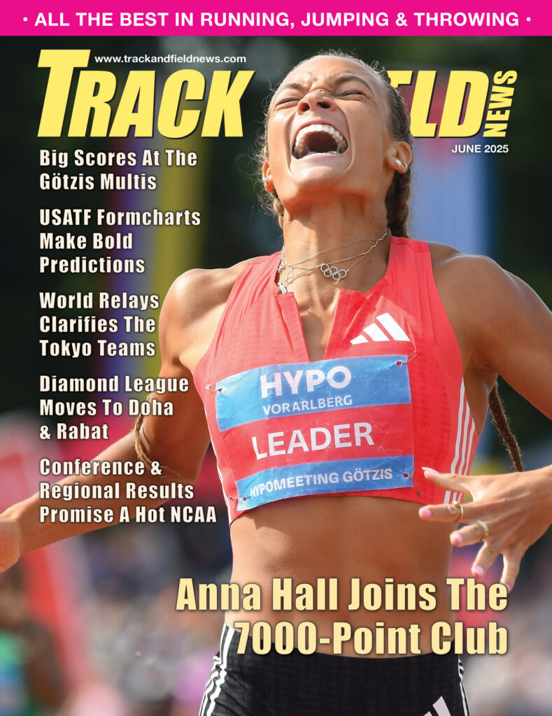 As May gave way to June and the Tokyo World Champs summer started to roll, Anna Hall set a meet-record 7032 in the heptathlon at the venerable Götzis multis gathering. The 24-year-old Hall’s ascent into the 7000-point club lifted her to =No. 2 all-time in the 7-eventer with the =No. 7 score in history. Only Jackie Joyner-Kersee has ever scored more. Don’t miss our coverage here…